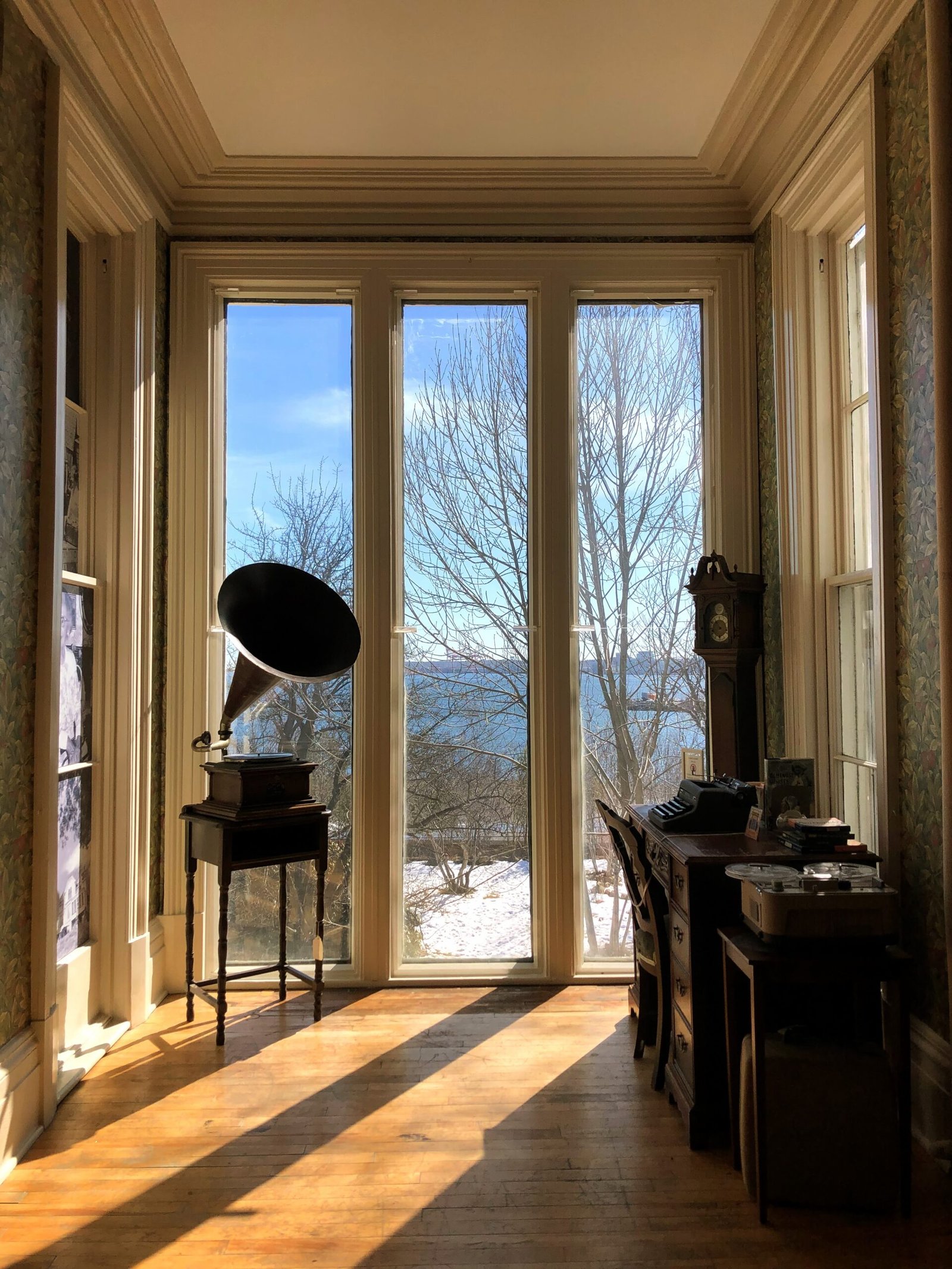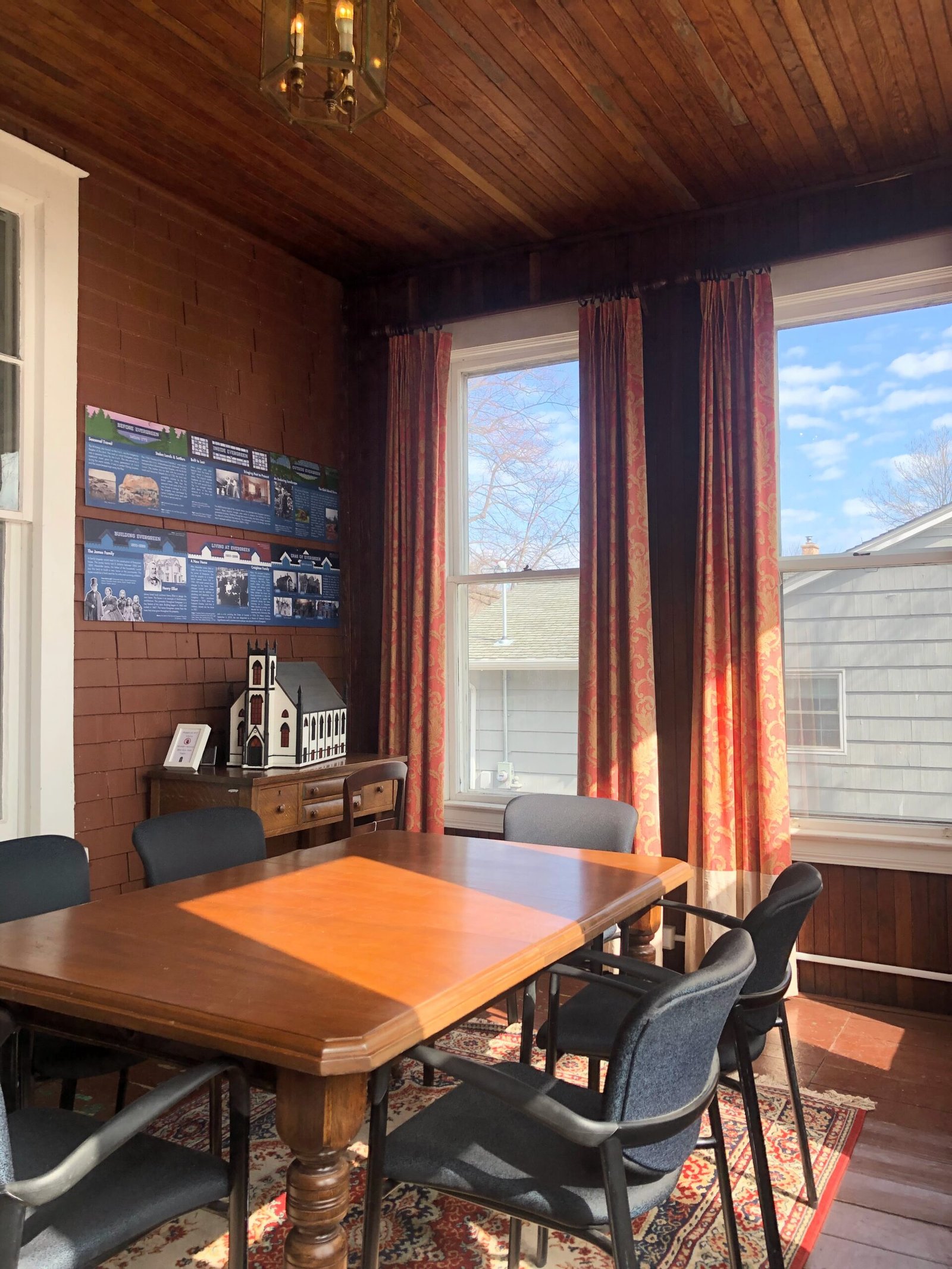 The Sun Porch is located directly off of the Green Parlour. These rooms are usually booked together, but can be booked separately. The Sun Porch is enclosed on all sides by windows, two sides looking out onto the harbour.